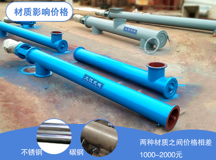 管式螺旋輸送機主要由碳鋼和不銹鋼兩種材質(zhì),選擇不同材質(zhì)的設(shè)備,其價格肯定會有所不同,在型號等其他情況相同下,碳鋼材質(zhì)的管式螺旋輸送機價格會比不銹鋼材質(zhì)的便宜1000-2000元,但是其耐腐蝕性卻沒有不銹鋼材質(zhì)的設(shè)備好,所以用戶在挑選材質(zhì)時要結(jié)合輸送物料。
